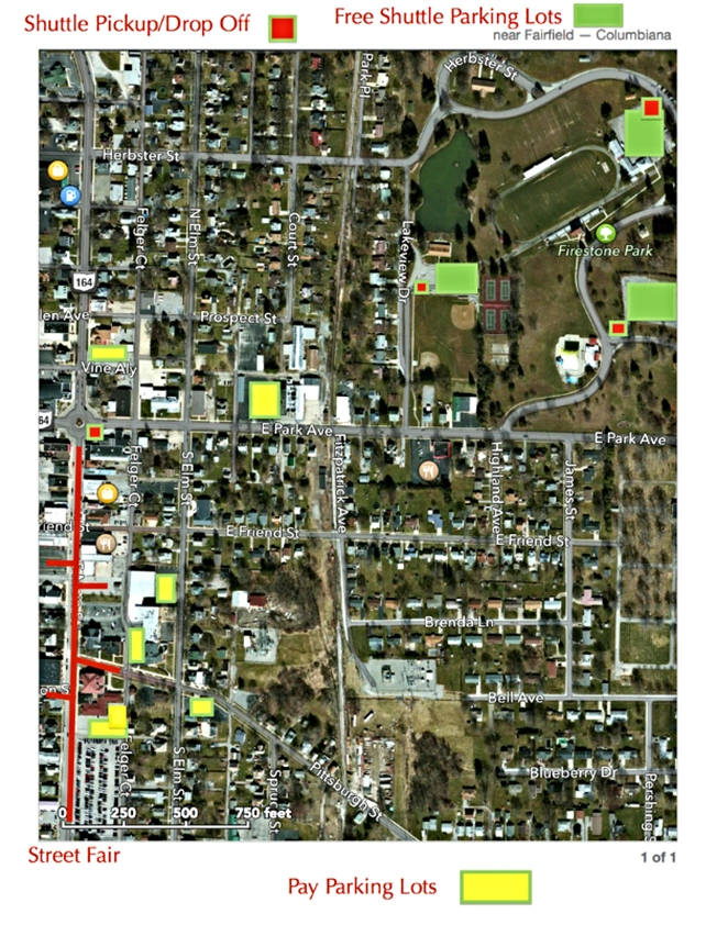 We try to offer shuttle parking on Friday and Saturday. By using the map you can see where there are both free and pay lots to park. When the signs are up for shuttle service parking then we have a shuttle that will take you from the park to the midway. Free of charge.